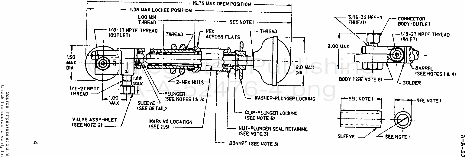 3. Bonnet, plunger seal retaining nut, plunger locking washer, connector body outlet and valve assembly inlet shall be leaded brass, 1/2 hard conforming to Unified Numbering System (UNS) C35600.